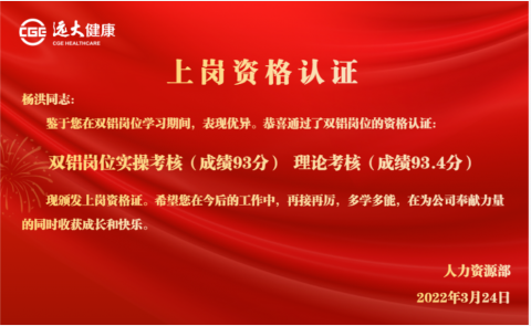 在各部門領導高度重視、被考核人員積極配合下,整個上崗培訓工作取得了圓滿成功。人力資源部對本次考核成績結果進行宣布,確定楊洪順利通過雙鋁工上崗認證,並進行表彰公示,頒發員工上崗證。